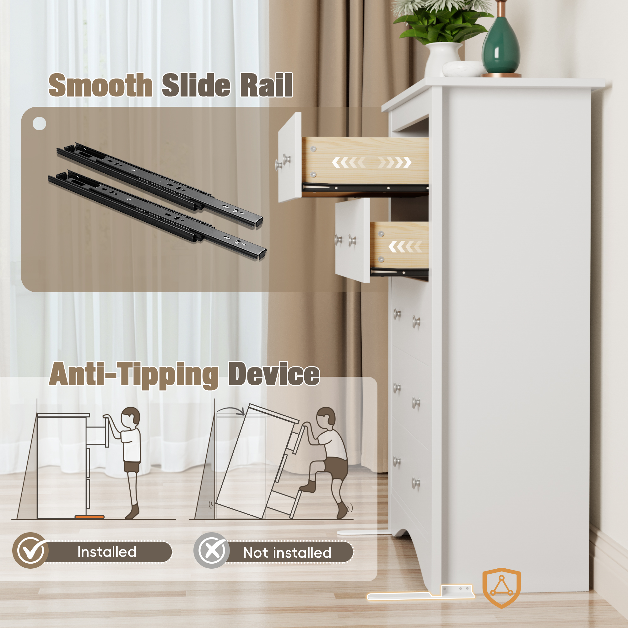 Furmax Tall Dresser for Bedroom, 5 Drawer Dresser, Chest of Drawers, Organizer Drawers, for Hallway Entryway (White)