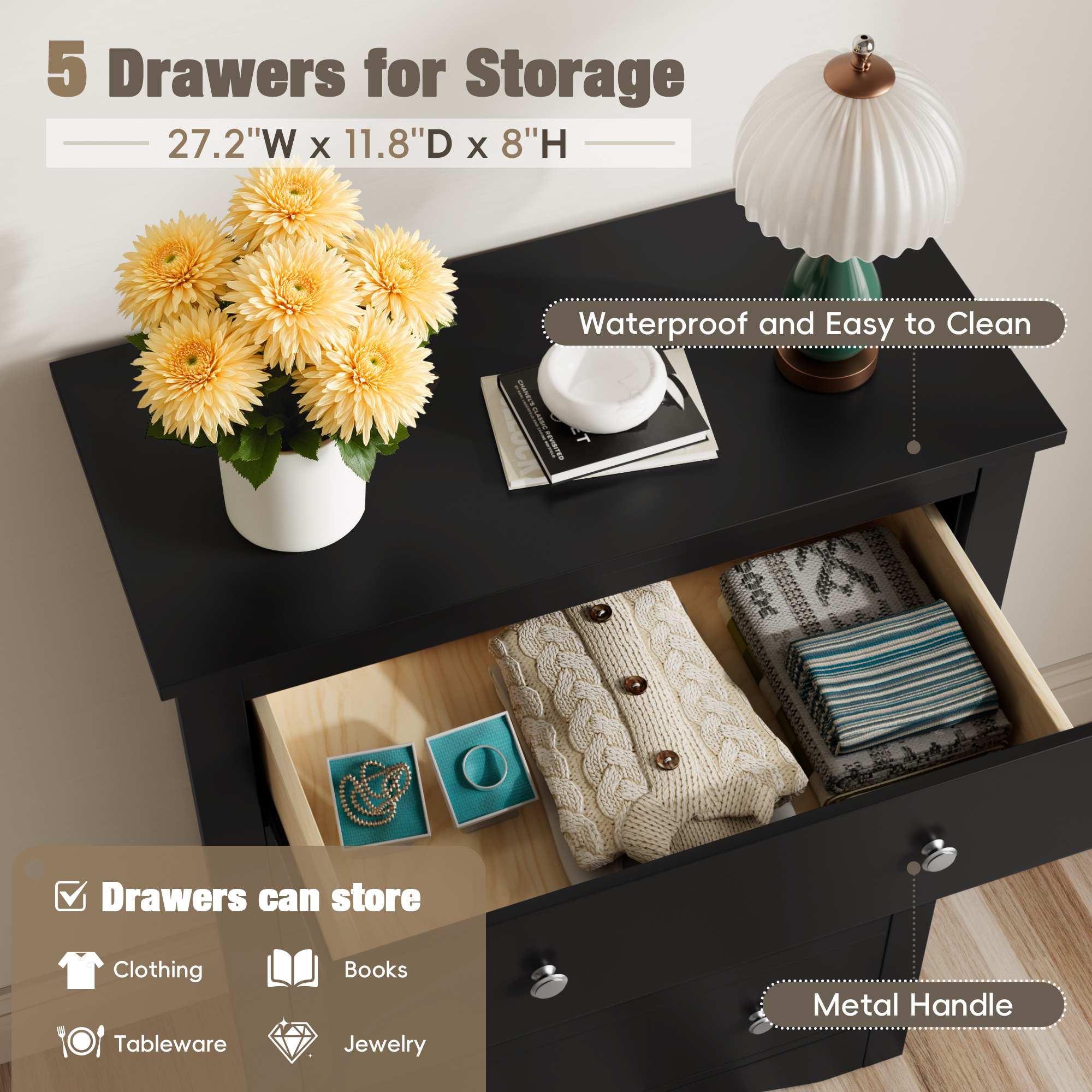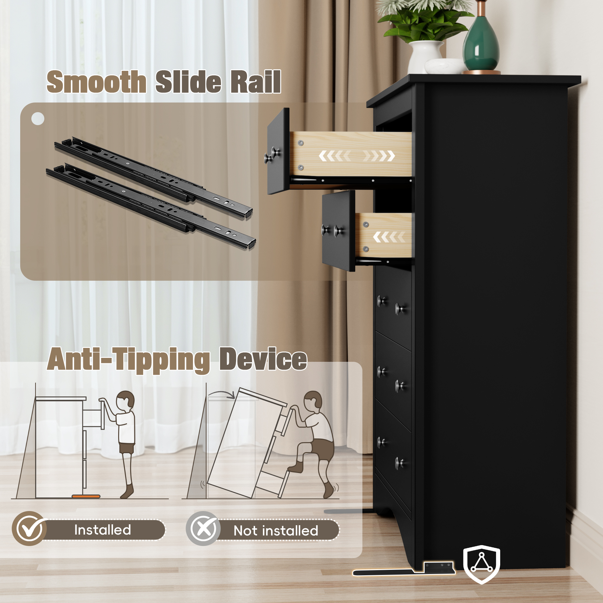 Furmax Tall Dresser for Bedroom, 5 Drawer Dresser, Chest of Drawers, Organizer Drawers, for Hallway Entryway (Dark Black)