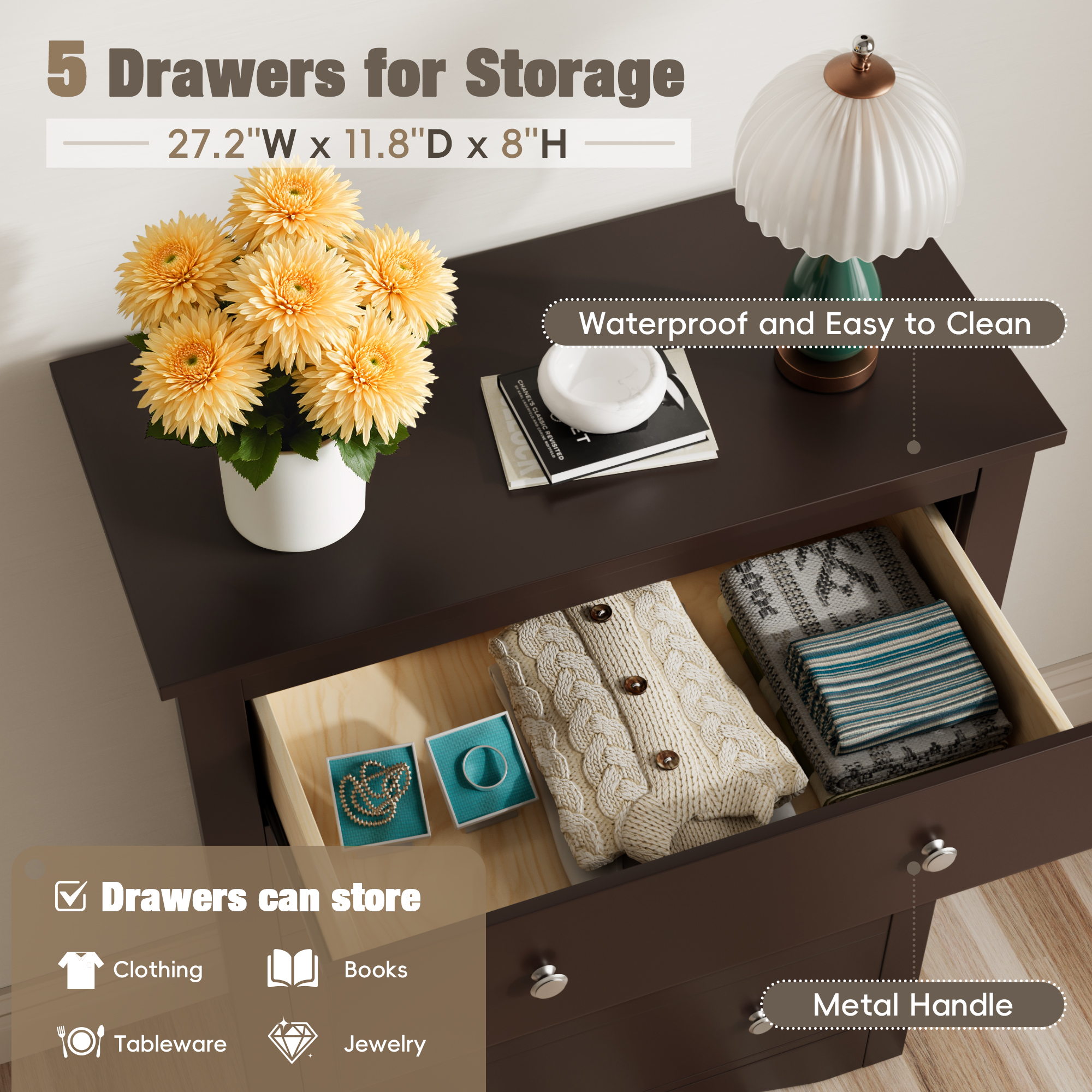 Large capacity: Whether it's everyday clothes, miscellaneous items, or accessories and books, everything can be easily stored inside. Each drawer has been carefully designed with just the right depth and width to keep your belongings neatly organized and free from clutter.