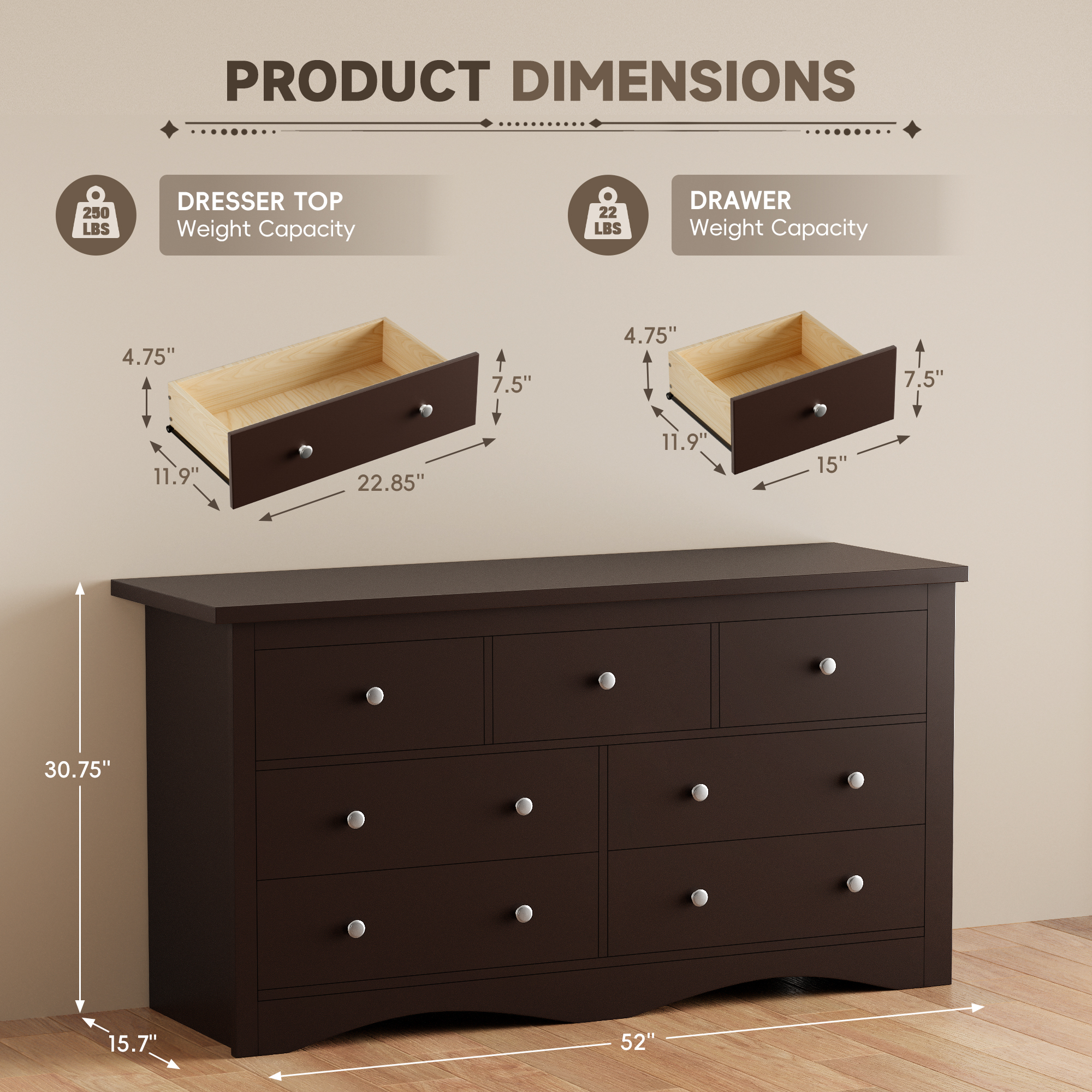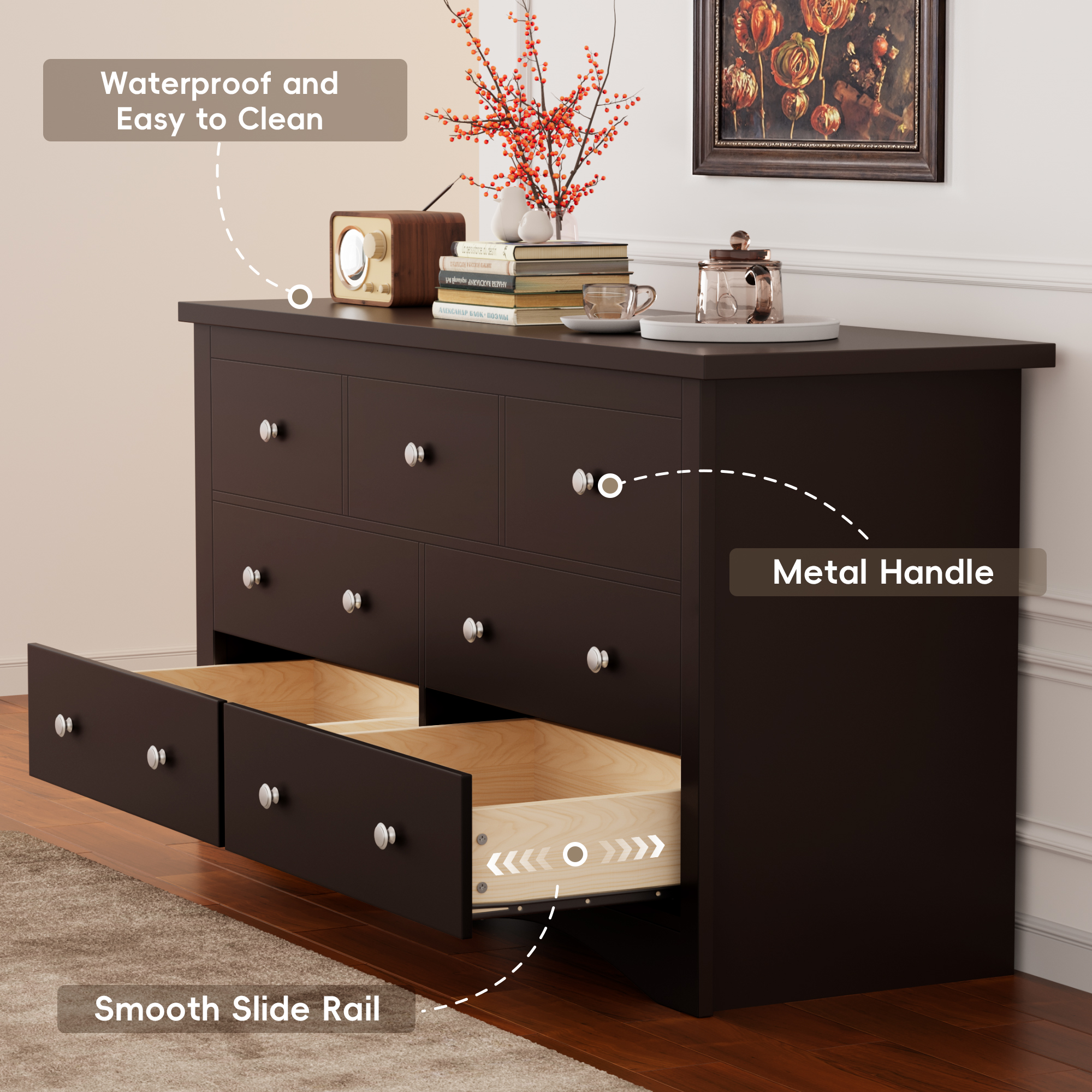 Furmax Dresser for Bedroom, 7 Wood Dresser, Chest of Drawers, for TV up to 65 inch, TV Stand Storage Chest of Drawers for Hallway Entryway (Brown)